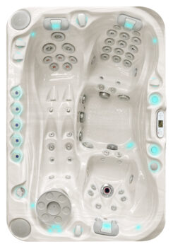 Deze spa biedt niet alleen comfort, maar ook functionaliteit. De ergonomisch ontworpen kuipzittingen zorgen ervoor dat je comfortabel tegenover elkaar kunt zitten, zonder dat je voeten elkaar raken. De kuip is zo gevormd dat de onderrug optimaal wordt ondersteund, wat zorgt voor volledige ontspanning van de wervelkolom. Het ligbed is geschikt voor zowel lange als kortere personen en biedt een ontspannende massage-ervaring. Dankzij de Aqua Rolling Massage, die de handen van een professionele masseur nabootst, kun je de intensiteit van de massage gemakkelijk aanpassen naar jouw voorkeur voor maximale ontspanning.